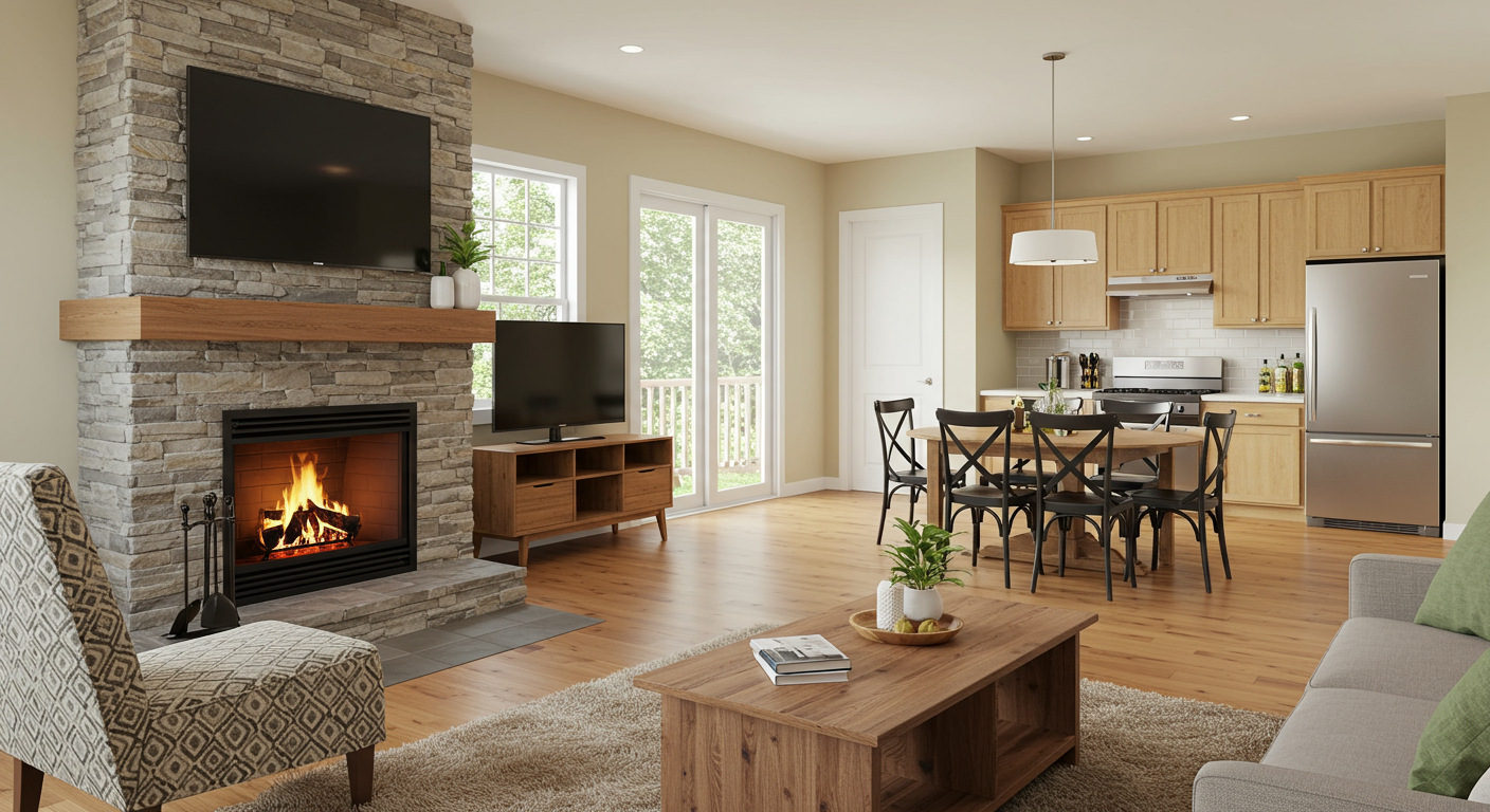 You sleep in the bedroom, cook in the kitchen, work in the office, and relax in the living area all of which are divided up by walls.